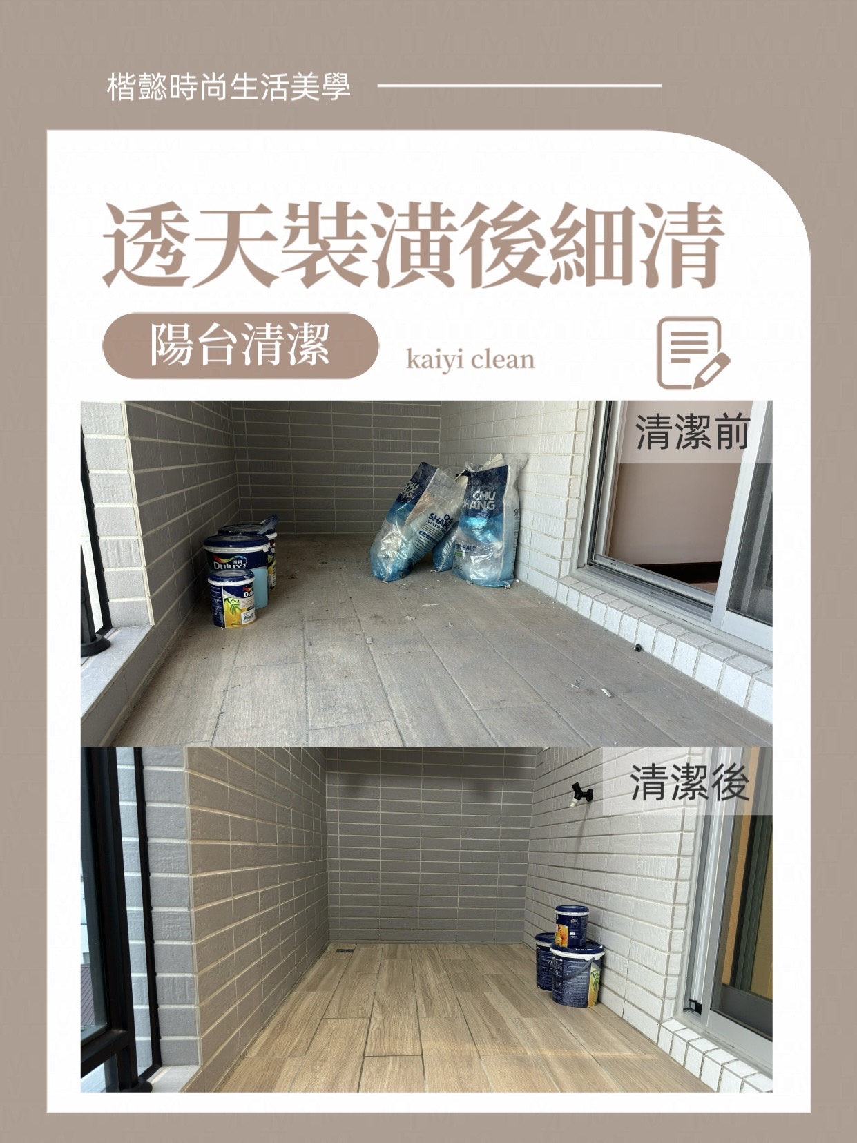 【裝潢後細清】作者: admin / 17 11 月, 2023 裝潢好房子後卻粉塵瀰漫,因為搬家沒有時間打掃,那就交給楷懿讓您開心入住 10/14-12/14活動期間 預約估價並安排清潔時間就享有85折優惠 除此之外,楷懿再準備一份居家清潔優惠紅包送給您,無論自用或送親朋好友都可以